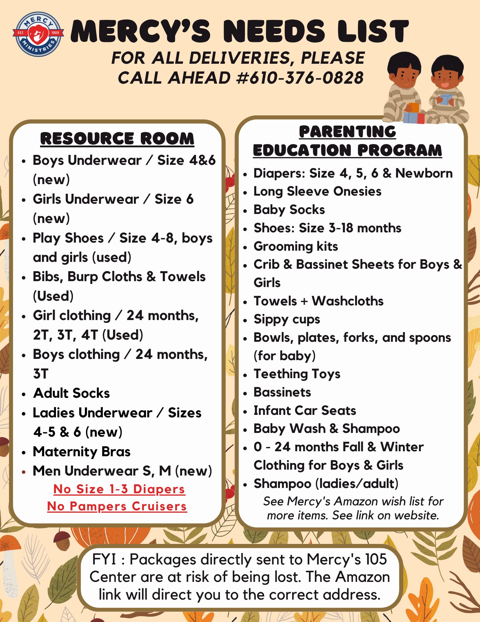 Mercy’s annual Client Christmas Event is a special way we can support our moms by easing some of the financial strain of the holidays. If you would like to help bless our moms, please drop off new, unwrapped toys by Nov. 21.