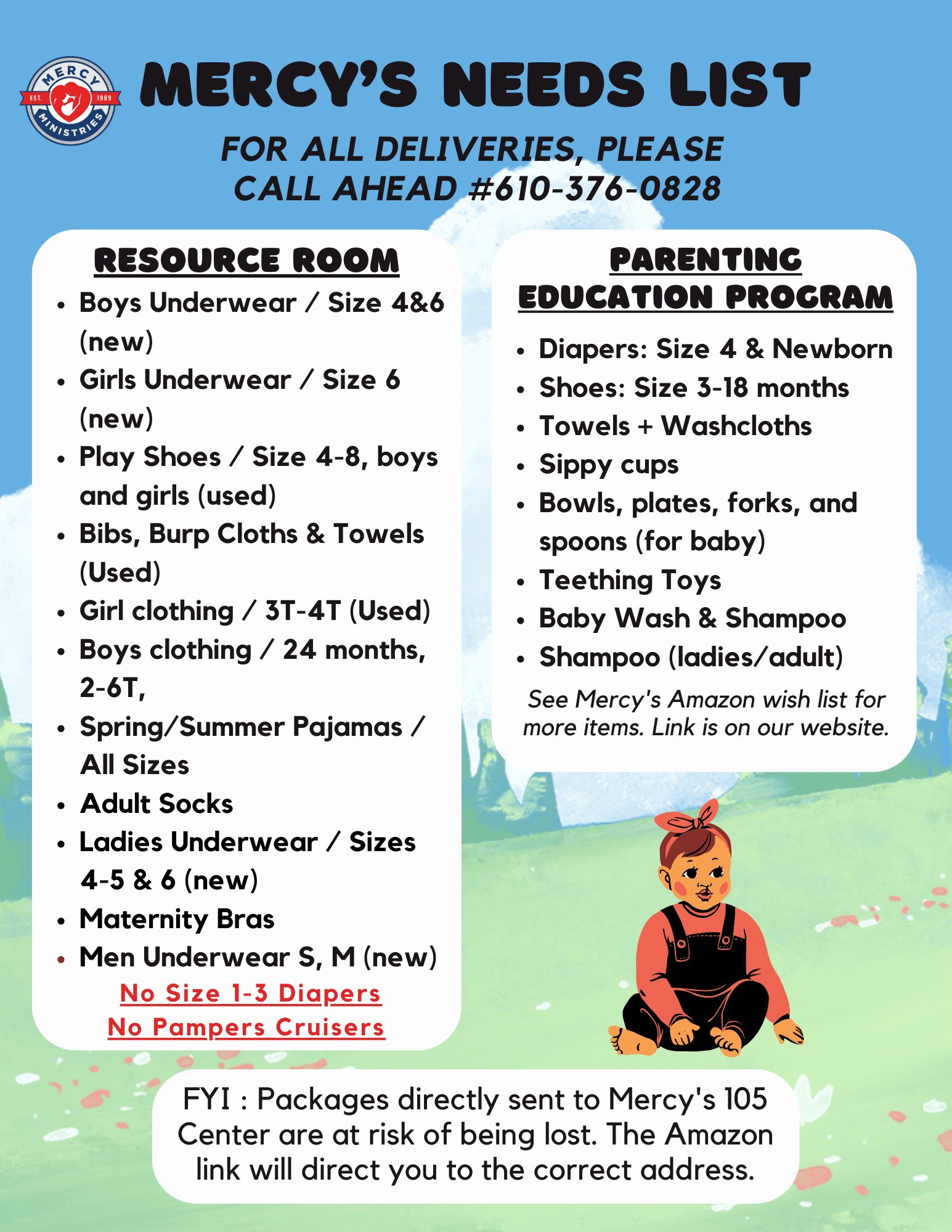 If your church doesn’t have a Mercy representative, you can be that person! The role includes attending two meetings a year, communicating Mercy’s events to your congregation, and organizing baby bottle and diaper drives.